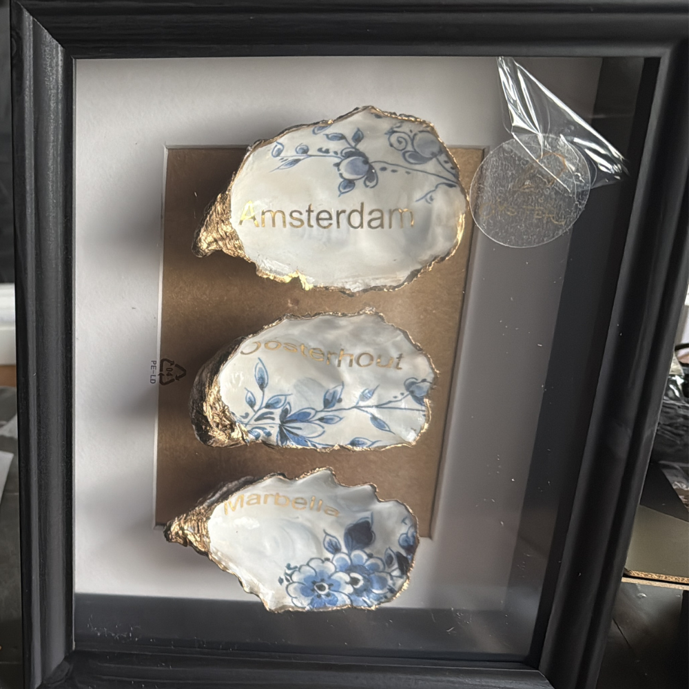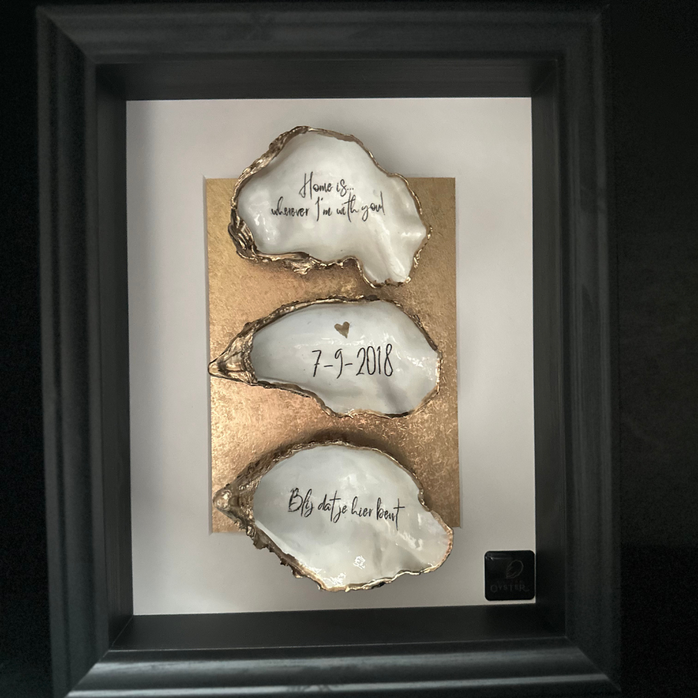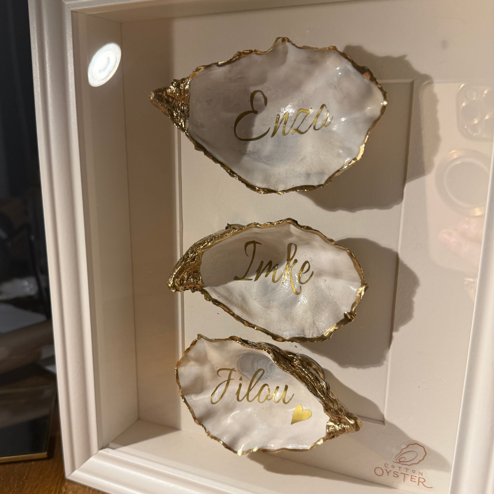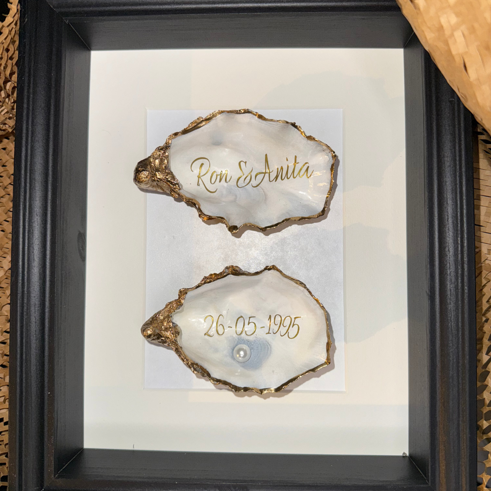 Gepersonaliseerde oesterschelpen in A4 lijst, zwart of wit